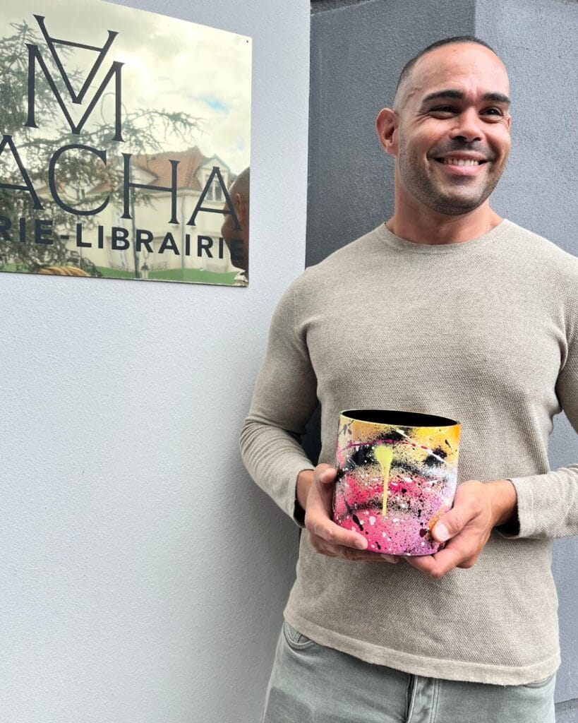L’artiste connu sous le pseudonyme Bonus a commencé son exploration artistique dès les années 90. C’est dans le graffiti qu’il a fait ses premières armes, transformant les murs et les trains de sa banlieue en toiles éphémères. Pour lui, le tag était plus qu’un simple acte de vandalisme ; c’était une évasion, une manière enivrante de marquer son passage, de laisser une empreinte indélébile, une véritable signature : Bonus.