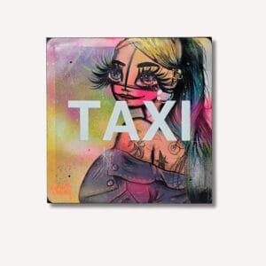 Cette pièce unique de Berthet One, réalisée sur bois, détourne la forme d'une main pour en faire une toile vibrante où le graffiti et la poésie se ren...