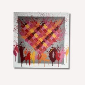 Cette œuvre est un concentré de rose et de rouge où Skizo superpose des lettrages de graffiti "LOVE" et "AMOR", capturant l'énergie brute et passionné...
