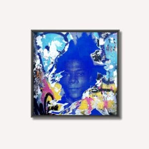 L'artiste a assemblé les fragments de manière très concentrée, laissant le visage émerger des nuances de bleu électrique appliquées à l'acrylique et à...
