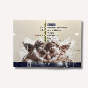 Les angelots s'invitent sur une plaque de métro parisien, mêlant l'art de la Renaissance au quotidien souterrain à travers des projections de peinture...