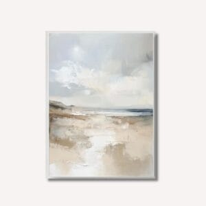 Cette composition abstraite et lumineuse capture l'éclat d'un horizon doré à travers des textures d'acrylique délicates, évoquant la sérénité d'un lev...