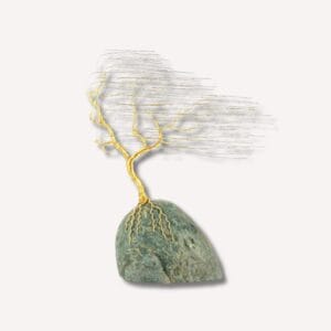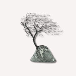 Un arbre tourmenté par un vent invisible, dont le fil sombre s'agrippe à la roche avec une force dramatique. Il incarne la puissance brute des élément...