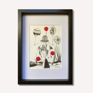 Vu de dos, le personnage nous invite dans son univers onirique peuplé de ballons graphiques et de cercles rouges vibrants. Un format intimiste où la p...