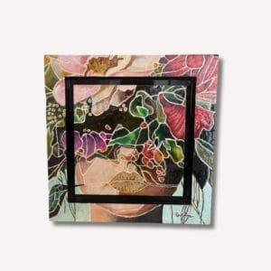 Encadrée dans un écrin de bois clair, cette pièce transcende le simple collage pour devenir une véritable sculpture murale, un hymne à la beauté éphém...