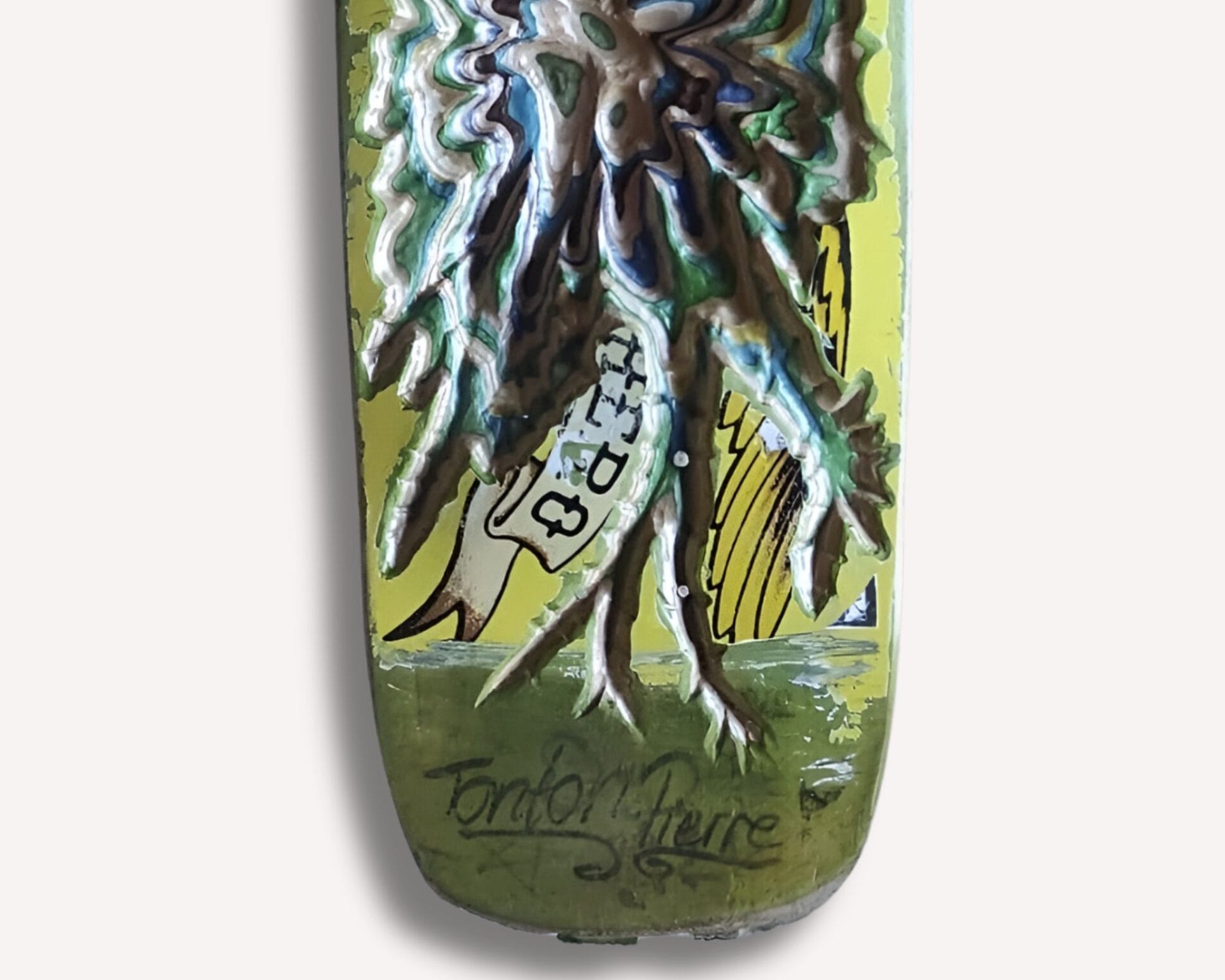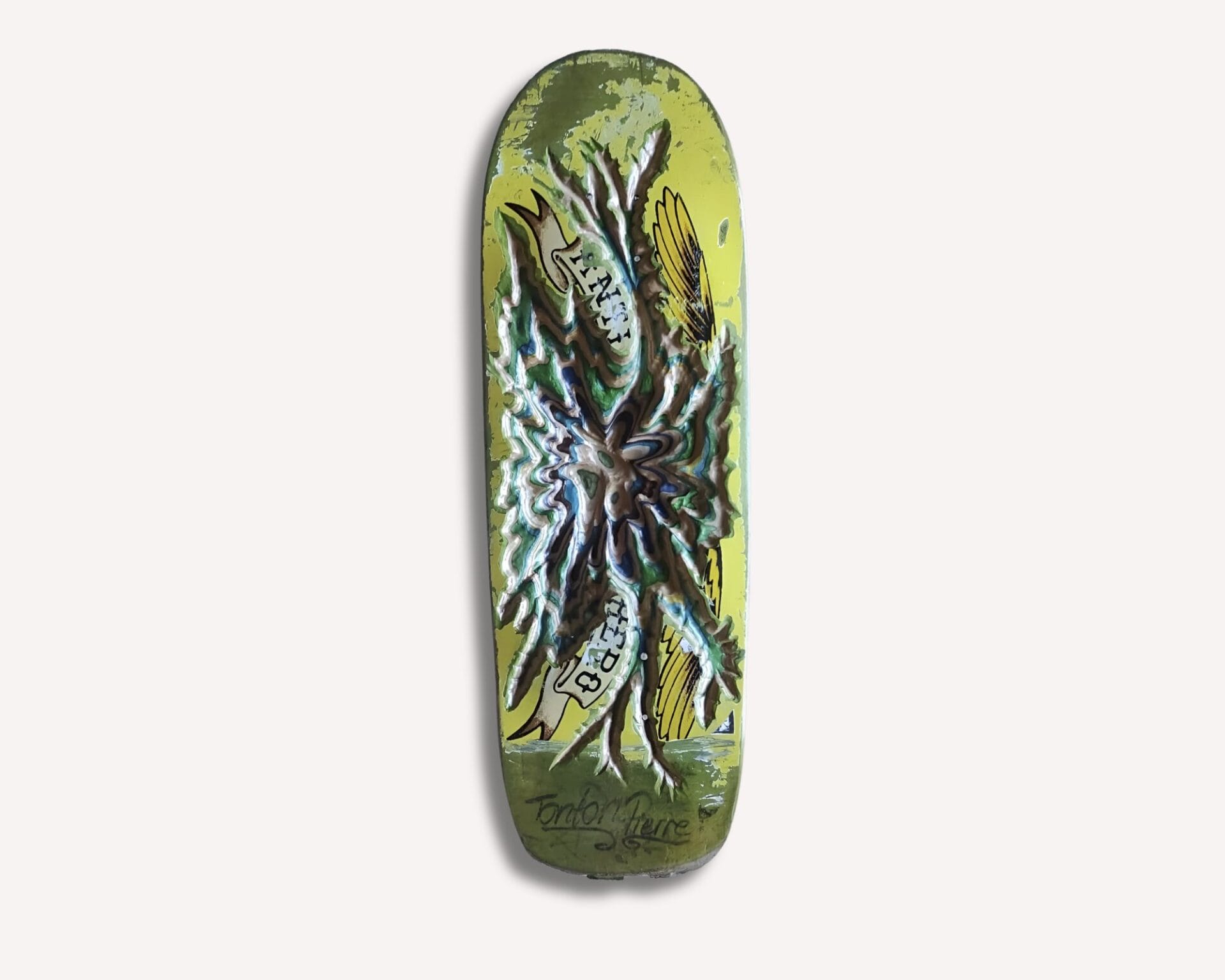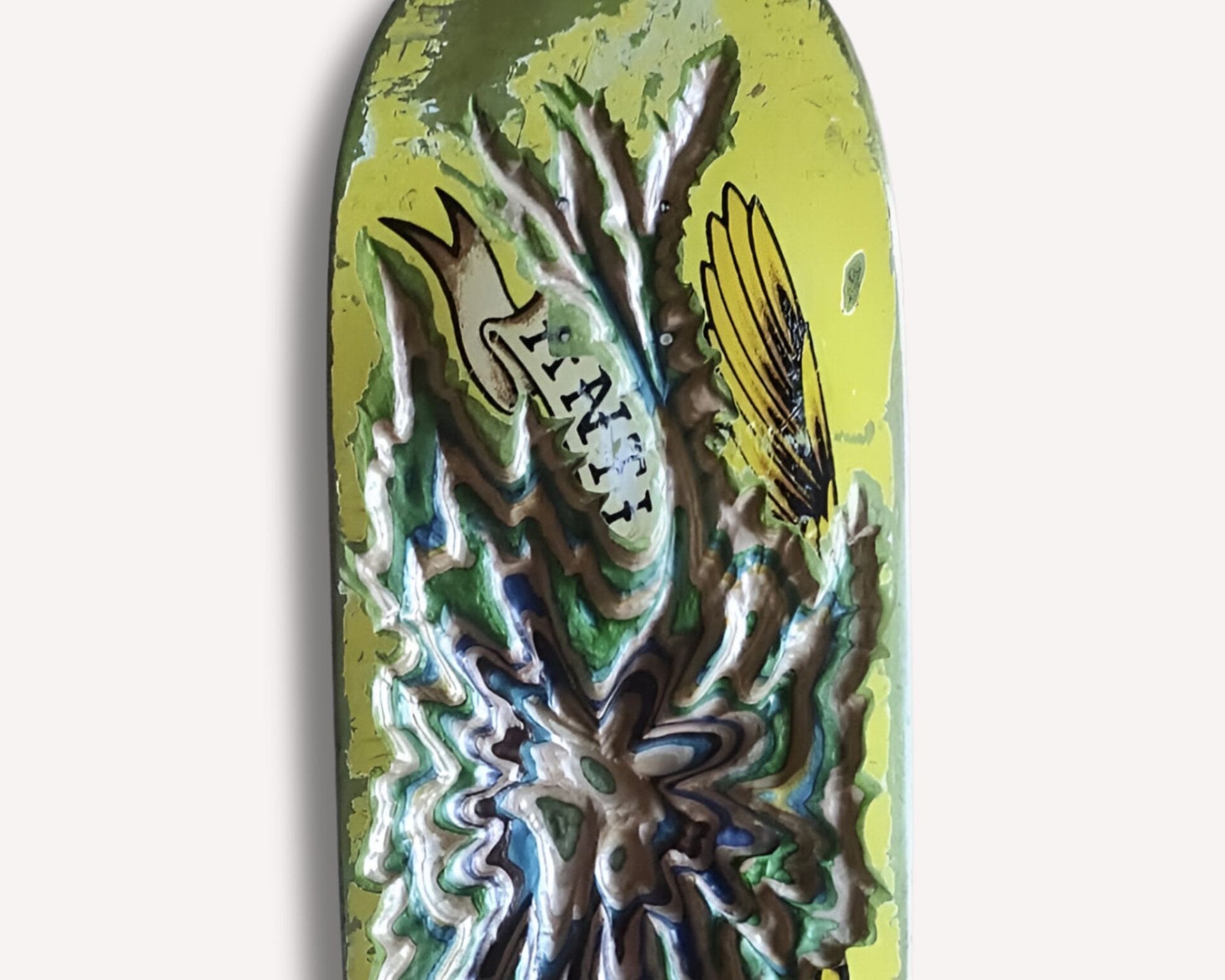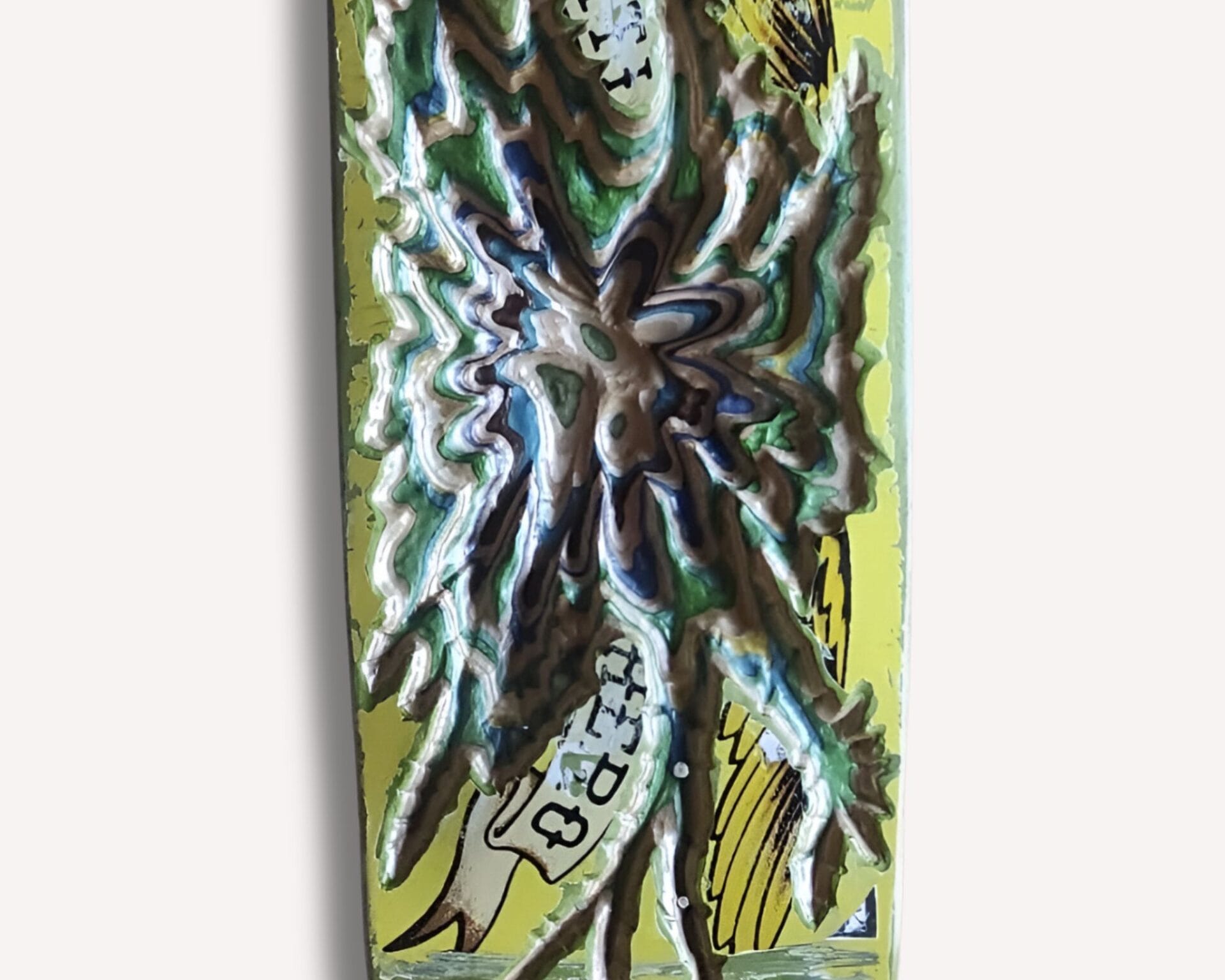 Sculptures spectaculaires issues de l’upcycling de planches de skateboard, ces œuvres uniques explorent des thèmes profonds comme la vie, la mort et l’amour. Chaque pièce transforme l’éphémère en intemporel, fusionnant l’énergie brute du skateboard avec la finesse du bois. L’art durable prend forme dans ces créations qui redonnent vie à des matériaux réutilisés.