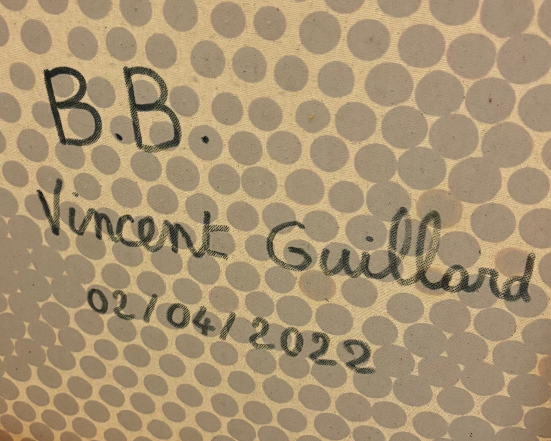 C’est un hommage subtil à la beauté intemporelle de Bardot, mais aussi une démonstration de la puissance du pointillisme. Le jeu des couleurs et des lumières crée une profondeur unique, où chaque regard découvre une nouvelle nuance, un nouveau détail. La magie opère : Guillard nous invite à naviguer entre abstraction et réalisme, où l’invisible devient visible, où l’œil du spectateur est guidé par une composition à la fois technique et poétique.