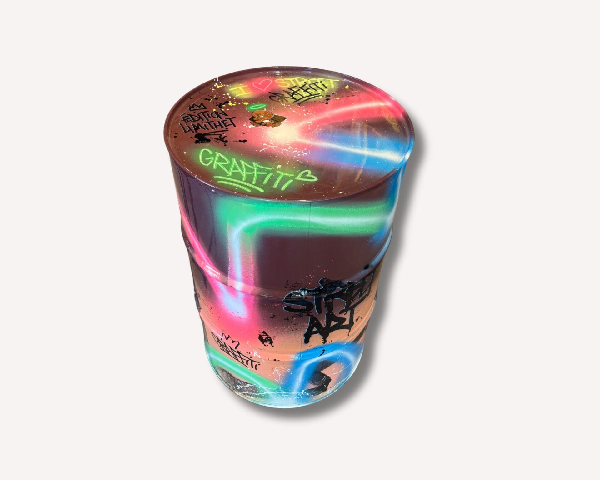 Berthet One, reconnu pour son style percutant mêlant satire, humour et engagement, insuffle à Barilz une énergie urbaine unique. Chaque détail, chaque couleur, témoigne de son parcours atypique et de sa volonté de faire de l’art un vecteur d’émancipation et de dialogue. Cette pièce, à la fois audacieuse et profondément humaine, capte le regard et invite à la réflexion, faisant de Barilz bien plus qu’une œuvre : une expérience à vivre et à partager.