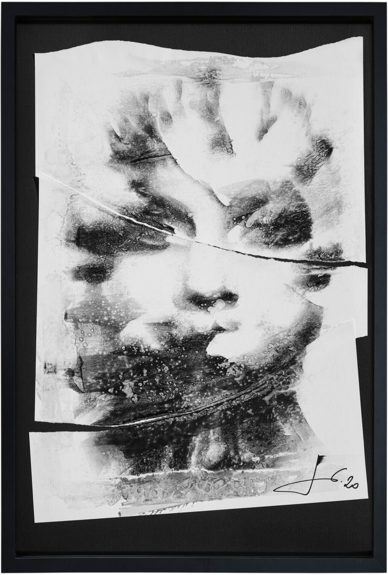 Ne comptez pas sur lui pour dévoiler sa nouvelle technique. À la croisée de l’estampe et de l’émulsion polaroïd, il fusionne des traces photographiques comme des coups de pinceaux sur une toile.