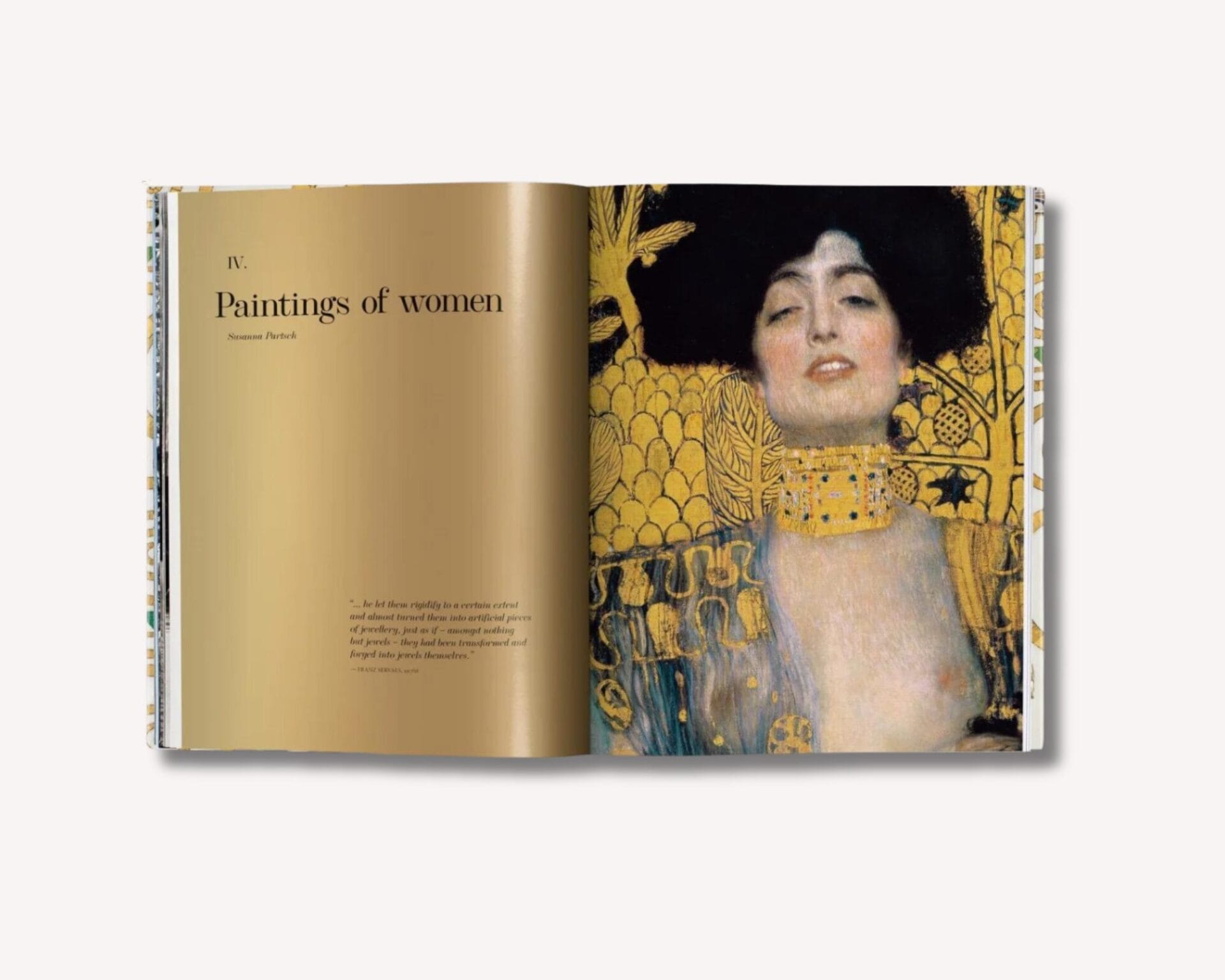 Grâce aux éblouissantes doubles pages et aux détails minutieusement choisis, cette monographie dévoile l’éventail des inspirations japonaises, byzantines et allégoriques qui irriguent les perspectives horizontales, le répertoire symbolique et les textures proches des mosaïques de Klimt. Fondé sur les critiques et grandes voix de l’époque, ce livre s’attarde aussi sur l’accueil mitigé de ses œuvres par le monde de l’art et sur son évolution stylistique. De ses paysages à ses toiles érotiques, jusqu’au plafond controversé de la grande salle d’accueil de l’université de Vienne, on comprend à quel point la presse et le public furent divisés par le mélange de tradition et d’audace chez Klimt, pornographe pour les uns, maître de l’art moderne pour les autres.