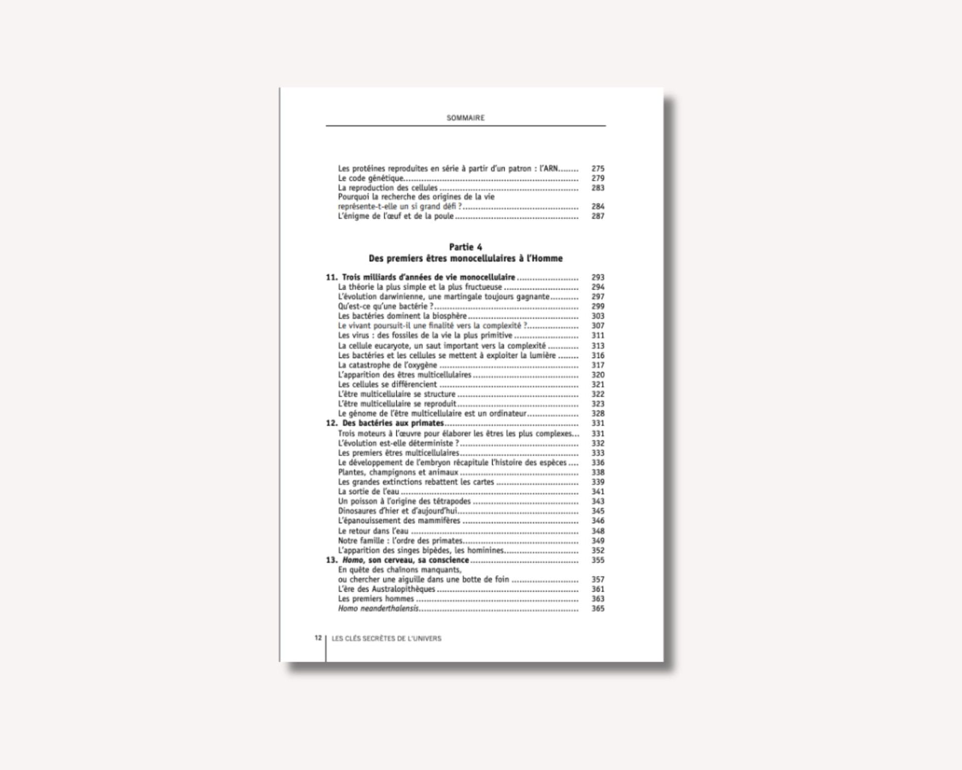 On les retrouve quand émergent la vie, l’Homme et les sociétés. Cette cohérence interpelle et donne un sens particulier à l’Univers. Les concepts scientifiques les plus avancés sont expliqués dans ce livre pour être accessibles à un public non scientifique et curieux vis-à-vis de l’Univers et de la vie.