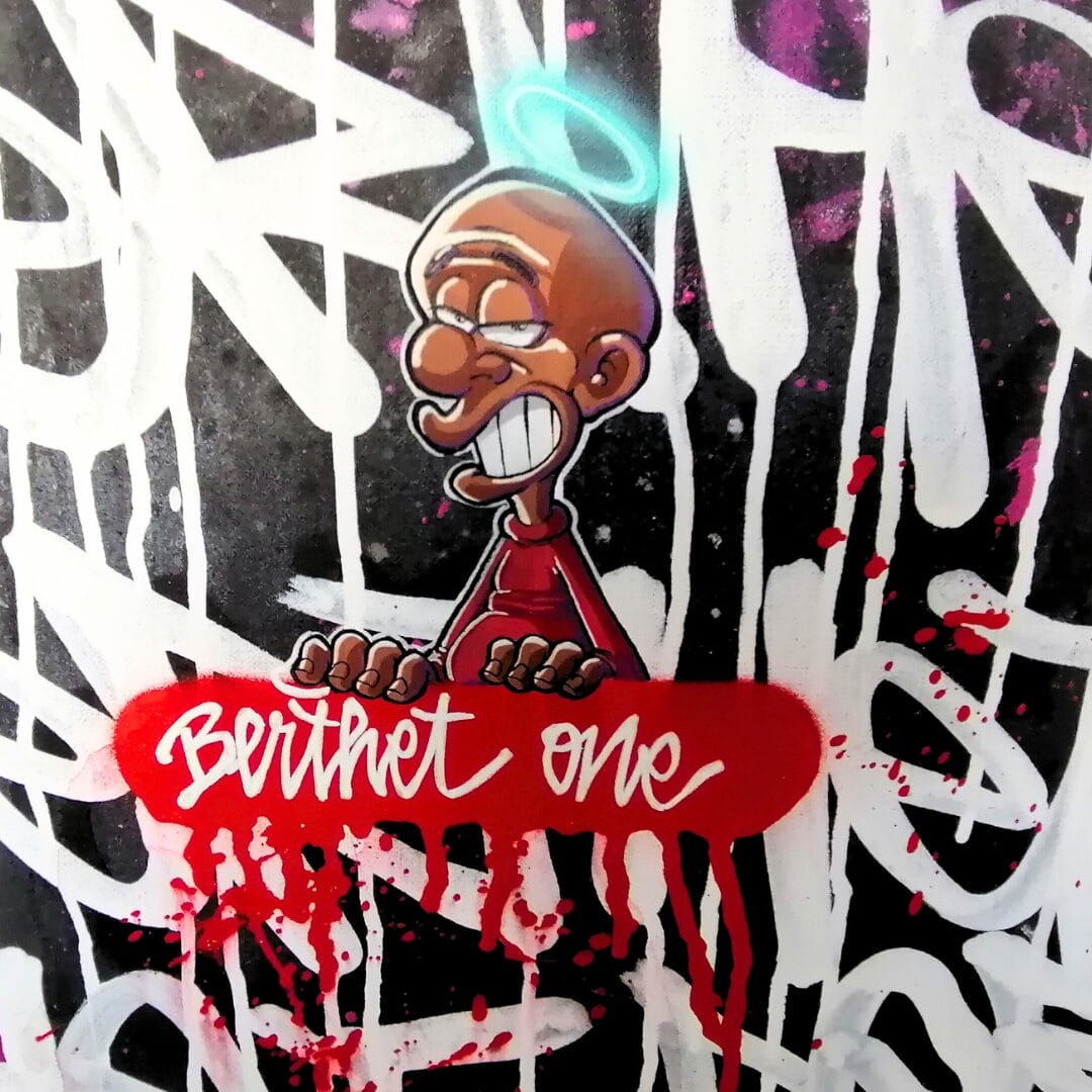 Berthet One a un parcours pour le moins atypique. Né à Paris en 1976, originaire du Congo Brazzaville, élevé en Seine-Saint-Denis. Berthet One est dessinateur, graffiti artiste et auteur de bandes dessinées. Berthet One a passé cinq années en prison pour braquage en 2006. Durant ses années d’incarcération, il renoue avec sa passion première : le dessin. Il passe son bac et obtient son BTS communication. Puis en 2009, sa vie bascule. Un an avant sa sortie, il décroche le premier concours transmurailles du festival d’Angoulème. Sa passion pour le dessin lui offre une “deuxième chance” qu’il ne laisse pas passer.