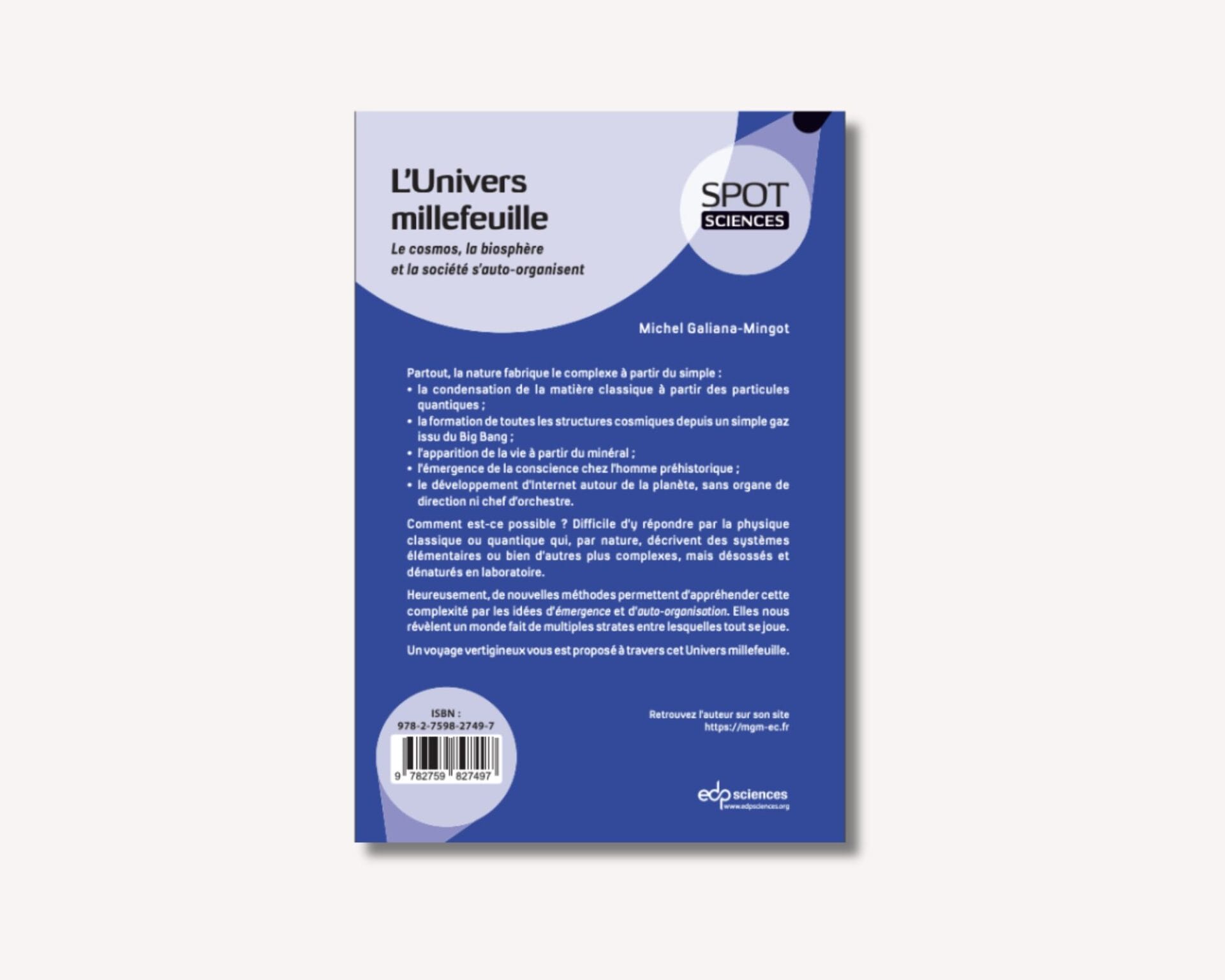 Alors, il s’est intéressé à l’origine de la vie en découvrant les travaux de Stuart Kauffman, Christian de Duve, H. Morowitz, etc.