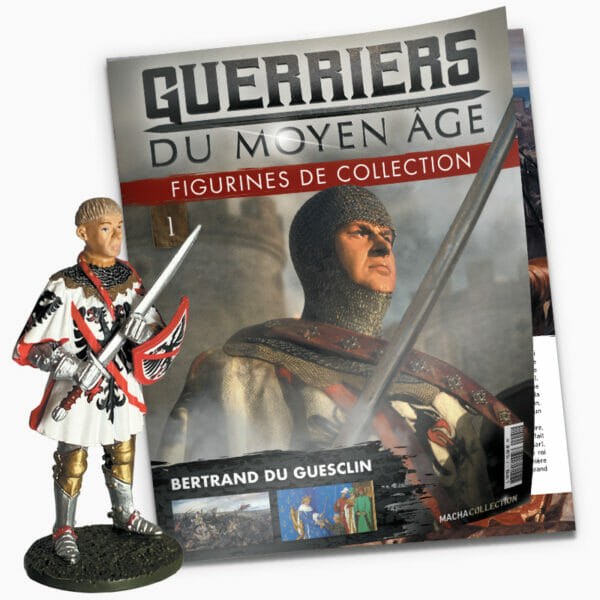 Vivez un voyage dans le temps, lors de la Guerre de Cent Ans avec une figurine de 54 mm exclusive de Bertrand du Guesclin, peinte à la main. Mais aussi, à travers le magazine de 16 pages détaillant les plus grandes batailles du guerrier. À travers ce magazine, vous découvrirez la phase Caroline, phase qui débuta après la courte paix de neuf ans. Vous découvrirez également toutes modifications faites sur les boucliers durant la guerre de Cent Ans.