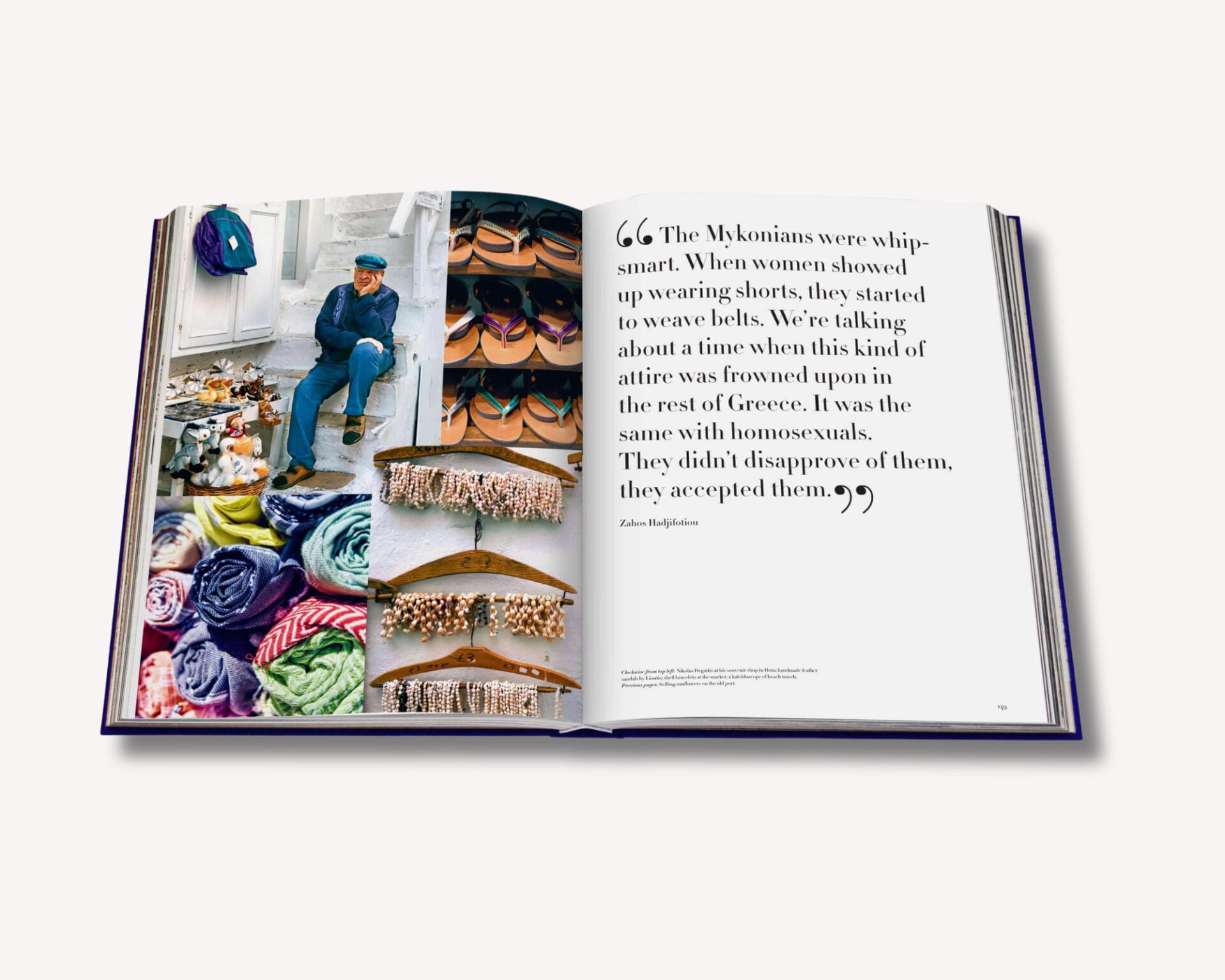 Ce livre fait la chronique de la culture et de la société qui ont défini Mykonos au cours du siècle dernier – de l’époque où elle était le repaire de sommités et d’élites telles que Le Corbusier et Antonis Benakis, à celle où elle est devenue un sanctuaire pour la communauté gay, en passant par sa scène festive prédominante – tout en faisant découvrir au lecteur les ruines et les mythes qui s’y cachent.