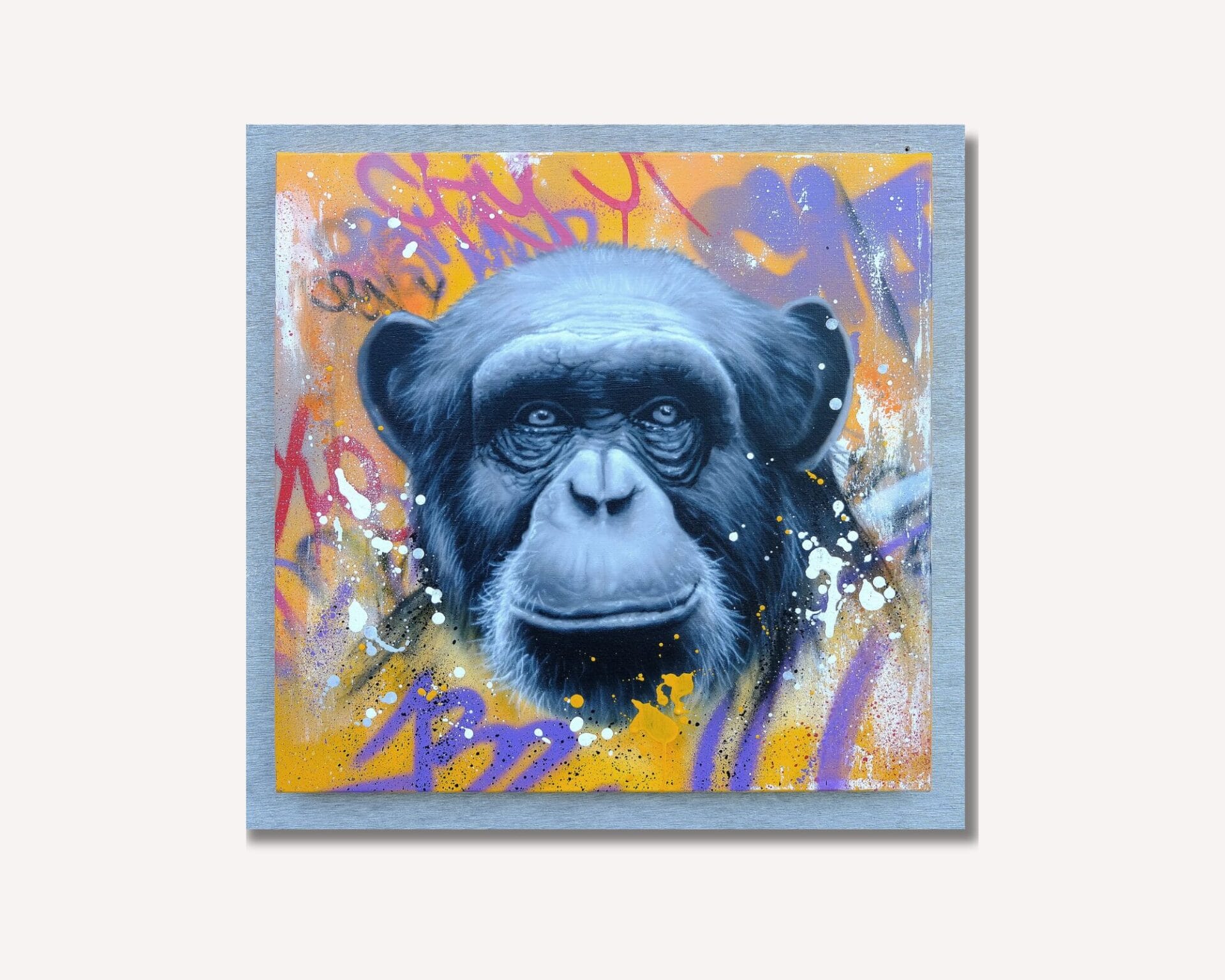 Ce portrait issu de la collection « Tracks » mêle l’énergie de la bombe aérosol à la force d’un regard grimé, capturant l’essence vibrante de la ville à travers ce visage animal.