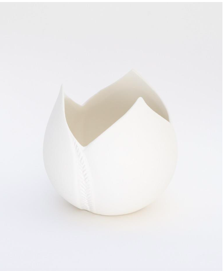 A vase of biscuit porcelain, entirely handmade. This sober and elegant decorative work will give a touch of whiteness and light to any interior. It is inspired by the beauty of nature and specifically by locations in Norway, where the artist spent his childhood.